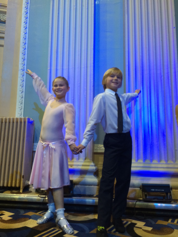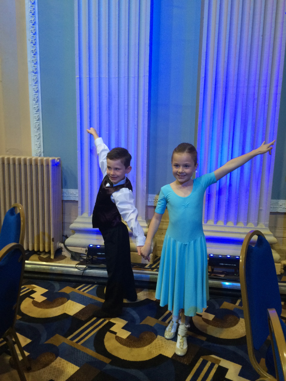 Junior Ballroom & Latin students Finlay & Clara take an opportunity to warm up before their 2014 Christmas Party at Inch Park Sports Club, with a Quick Step.