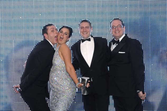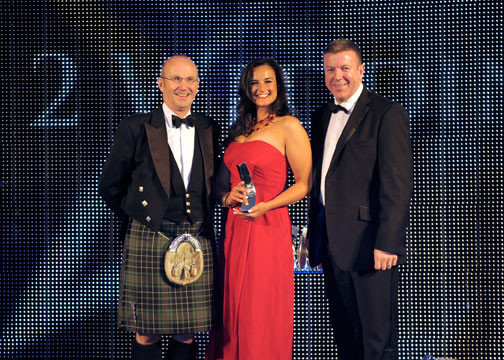 Felicity collecting her Vows Award 2010,alongside commedian and broadcaster Fred MacAuley and Stewart Roxburgh from Scottish Enterprise.